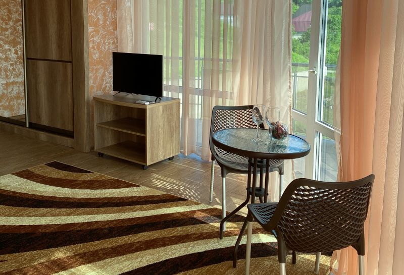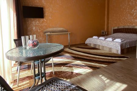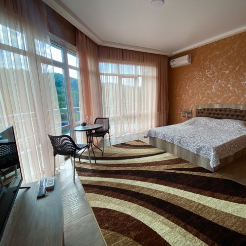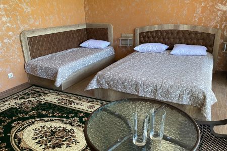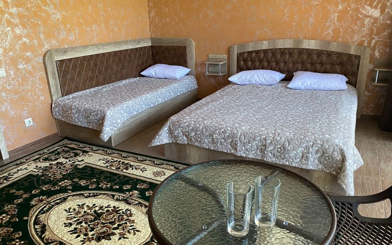 Двадцать четыре просторных номера разместились в современном 3-этажном здании. В комнатах установлена удобная мебель для отдыха, есть места для хранения одежды. В каждом номере предусмотрен телевизор, кондиционер, мини-холодильник, отдельная ванная комната, фен, тапочки, комплект полотенец.