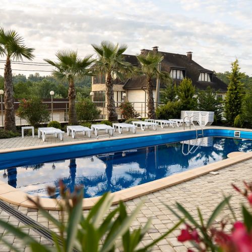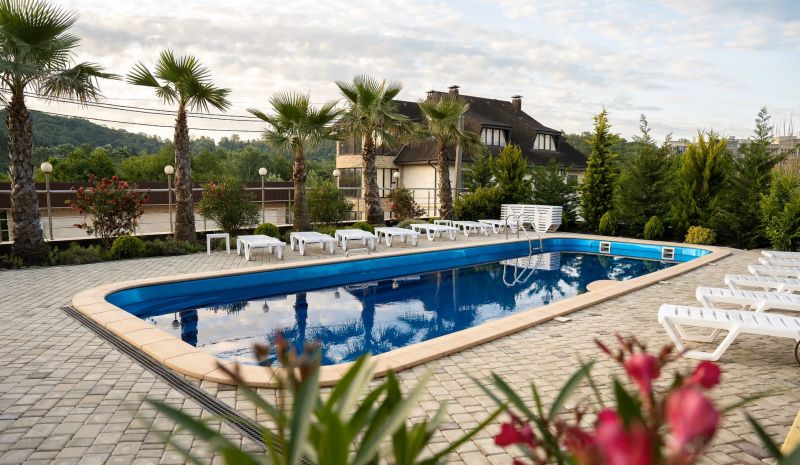 - пользование открытым бассейном и лежаками