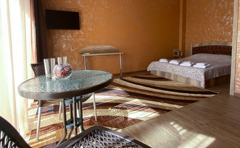 На территории гостевого дома работает столовая, где каждое утро сервируется горячий завтрак. Также работает гриль-бар.